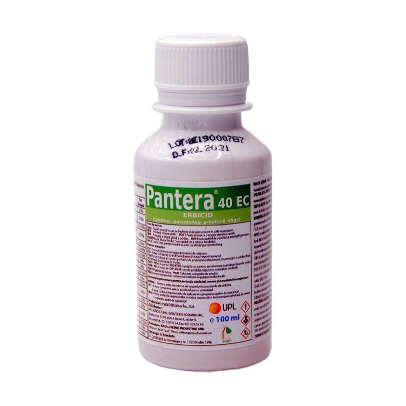 Preț unitar perPantera 40 EC este un erbicid sistemic postemergent, utilizat pentru combaterea buruienilor monocotiledonate anuale și perene, precum și a samulastrei cerealelor, în culturile de rapiță, floarea-soarelui, sfeclă de zahăr, cartof, soia, legume și lucernă.